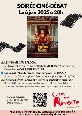 Une soirée ouverte à tous autour de la projection du film "Les Femmes au Balcon" de Noémie Merlant, marraine de l'association, avec un débat animé par les bénévoles pour comprendre, écouter, se sentir moins seul.e et agir.